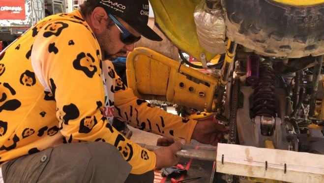 "No meu primeiro Dakar em 2015, tive uma experiência muito limitada e participei com uma máquina de segunda mão em 2006. O primeiro estágio foi bem, mas na etapa de estradas indo ao bivouac eu enfrentei alguns problemas técnicos. Felizmente, um carro me rebocou até o bivouac e, depois de conversar com vários outros concorrentes, consegui encontrar um motor de substituição. Me levou toda a noite para mudar, mas depois de uma longa noite de sono, eu estava no palco do dia seguinte! "