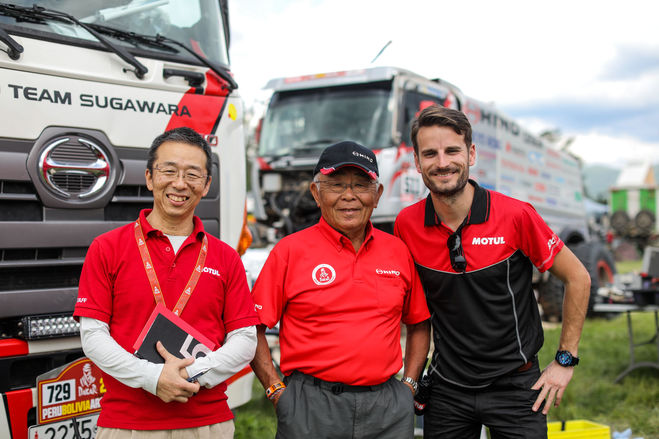 "Depois de duas participações com a moto Honda (1983 e 1984), mudei de 2 para 4 rodas em 1985 graças à Mitsubishi e à Pioneer. Na verdade, naquele momento, o mercado de carros off-road estava crescendo bastante e a Mitsubishi percebeu que o Dakar tornou-se o melhor evento de corrida para mostrar a qualidade de seus carros. A Pioneer juntou-se automaticamente ao projeto como patrocinador principal e solicitou um piloto japonês. Meu sonho se tornou realidade graças a essas duas marcas! Nos últimos anos, senti que estava pronto para um novo desafio e me muudei de carro para categoria de caminhão! 2018 é o meu 27º ano consecutivo com o caminhão Hino já!"